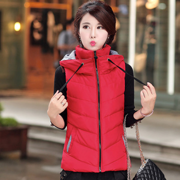 2015秋冬新款棉馬甲 不規則下擺翻領連帽修身保暖女士羽絨棉馬甲 /