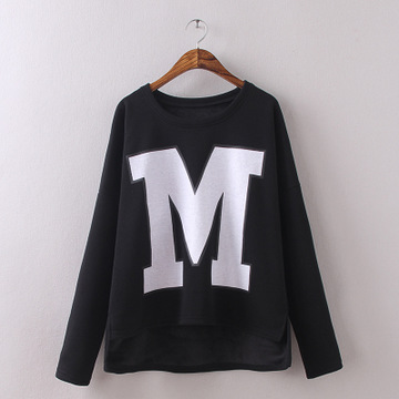 冬季新款胖MM大碼加絨女裝時尚寬松加厚不倒絨大M印花短款打底衫 /