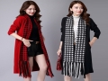 發(fā)財友2015冬季新款女式高檔雙面貂絨長款翻領(lǐng)大衣女時尚格子提花 /