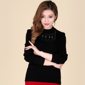 秋冬新款女式針織衫 長袖套頭純色打底衫 中老年女裝毛衣針織衫 /