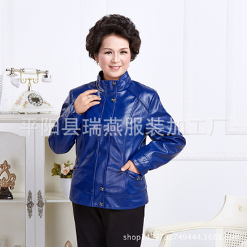 批發中老年女裝秋冬中年PU皮修身皮衣媽媽裝老年人外套廠家直銷 /