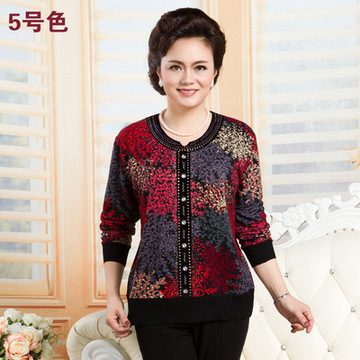 2015春裝新款中老年女裝打底衫圓領媽媽毛衣開衫春秋老人針織衫 /