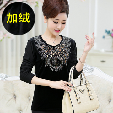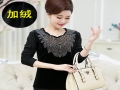 冬裝新款中老年女裝金絲絨打底衫媽媽裝大碼厚加絨保暖網紗T恤衫 /