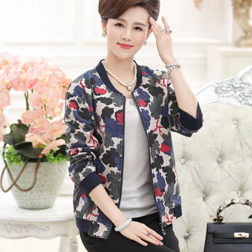 2015秋裝新款媽媽裝40-5短款長袖迷彩夾克外套韓版中老年開衫上衣 /