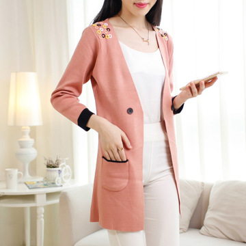 伊子2015秋季韓版新款一粒扣小口袋修身針織開衫女式外套Z519F /