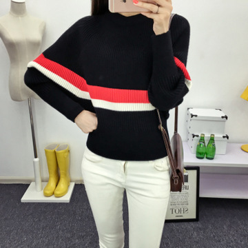 伊子2015秋冬新款韓版寬松圓領條紋蝙蝠衫女式打底針織衫Z510X /