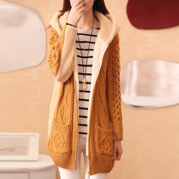 伊子2015秋冬韓版新款加厚加絨口袋拉鏈女式連帽針織開衫Z478D /