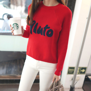 伊子2015秋季韓版新款修身套頭字母長袖針織衫女式打底毛衣Z363D /