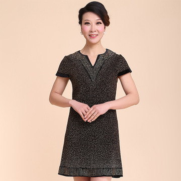 2015新款初秋中老年女裝媽媽裝亮鉆v領(lǐng)大碼韓國金絲絨夏裝連衣裙 /
