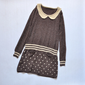 外貿原單羊毛衫中長毛衣裙日單毛針織衫娃娃領連衣裙秋冬毛衣 /