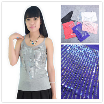 2015新款韓夏裝小吊帶背心 繡漂亮心形珠片上衣打底衫純色批發 /