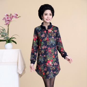 2015秋季新款媽媽裝連衣裙 時尚中長款大碼中老年女裝碎花裙批發 /