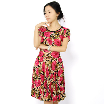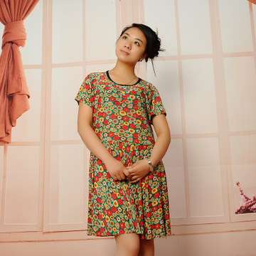 新品女裝休閑加肥加大中老年連衣裙 印花媽媽連衣裙服裝批發 /