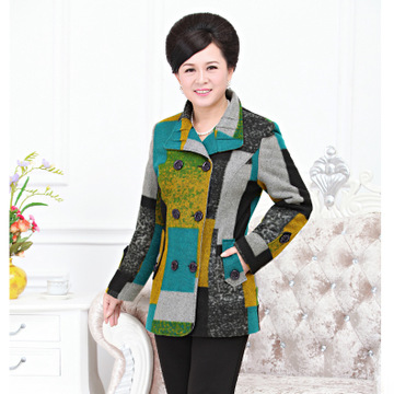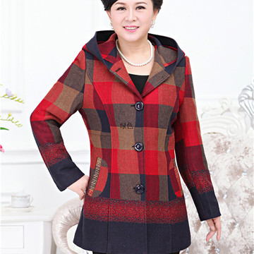 中老年女裝冬季新款外套媽媽裝格子毛呢中長版風衣 /