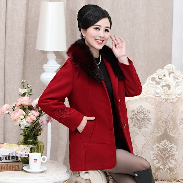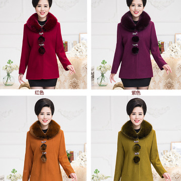 2015中老年女士毛領羊毛尼秋冬外套媽媽裝時尚大碼中長款毛領大衣 /