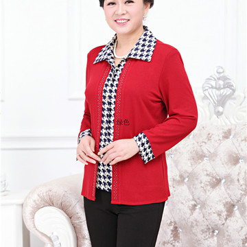 中老年女士媽媽裝春秋針織外套襯衣純棉假兩件套 /