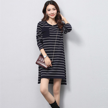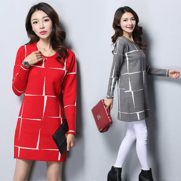 廠家直銷2015秋冬新款韓版套頭圓領羊絨衫寬松中長款毛衣女連衣裙 /