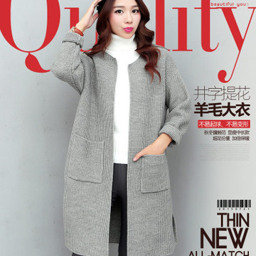 2015冬款韓版加厚加長圓領長袖純色開衫寬松長袖口袋毛衣女批發 /