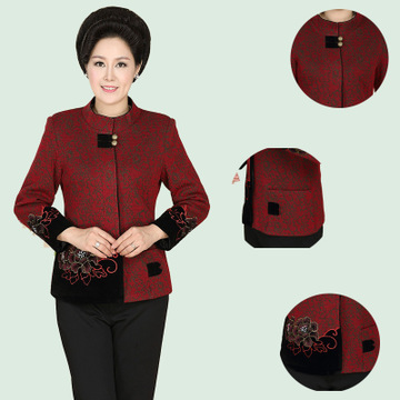 2015新款中老年立領唐裝秋裝媽媽裝加大碼修身顯瘦寬松喜氣外套 /