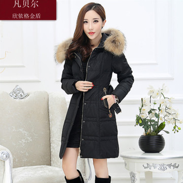 2015新款女裝韓版修身中長款大毛領女士羽絨服廠家直銷批發(fā)零售 /