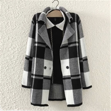 2015秋裝新款 韓版黑白格子西裝領寬松毛衣外套 女 羊毛衫開衫 /