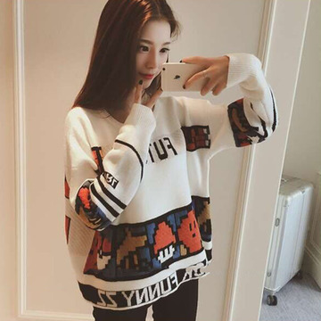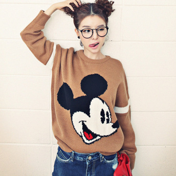 女裝 2015秋季新款歐美毛衣女套頭加厚米奇寬松羊毛針織衫 /