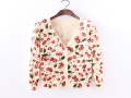 新款品首發批發原宿櫻桃印花毛衣V領長袖修身針織開衫女式印花衫 /