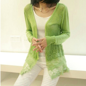 夏裝新款2015顯瘦修身薄款中長款開衫鏤空蕾絲針織衫防曬衫 /