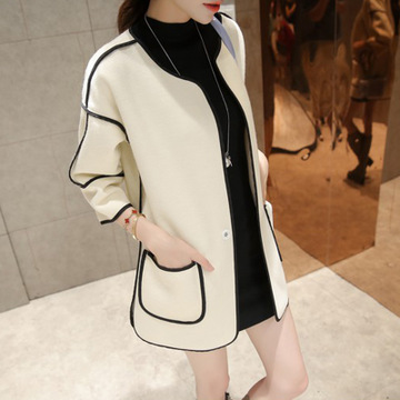 2015秋裝新款中長款休閑外套大碼修身百搭七分袖韓版風衣女 /
