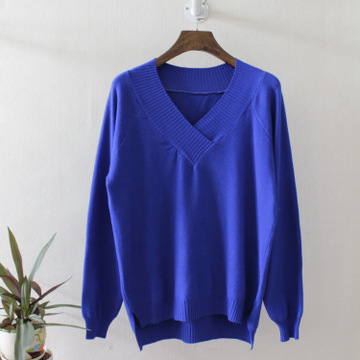 2015韓版秋季新品寬松大碼女針織衫純色套頭V領長袖冬款打底毛衣 /