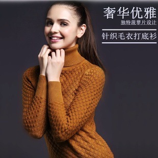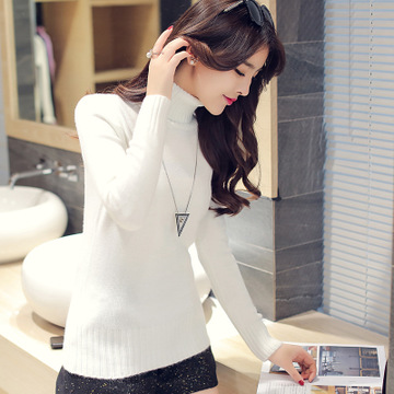 2015秋裝新款女裝高領毛衣女套頭加厚韓版修身純色針織打底衫上衣 /