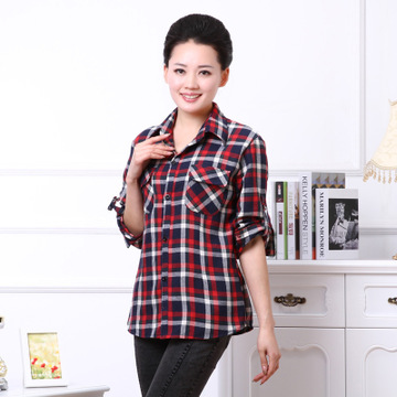 2015中老年女裝襯衫女 格子襯衫女中老年批發 中老年襯衫春季新款 /