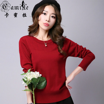 2015秋冬新款女式針織衫韓版長袖短款純色寬松針織打底衫套頭毛衣 /