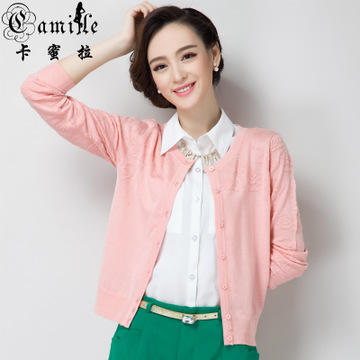 【淘寶爆款】2015春裝新款長袖針織衫小外套女短款紐扣圓領小開衫 /