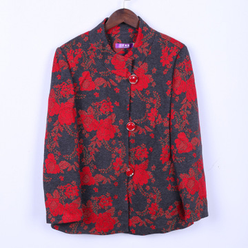 仨星報福2015年中老年秋季新上灰色繡紅花 女士外套 /