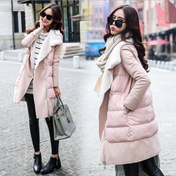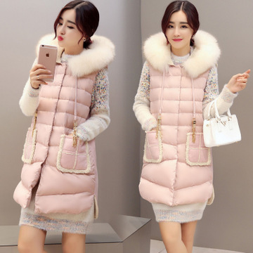 2015韓版冬裝新款女裝狐貍毛羊羔絨中長款粉色羽絨服棉馬夾外套 /