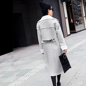 2015冬季新款 韓版時尚寬松加厚麂皮絨拼接中長款羽絨棉服外套女 /
