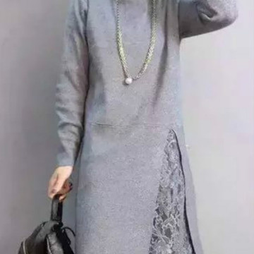 2015秋冬裝新款韓版中長款蕾絲拼接下擺開叉打底針織衫女士毛衣 /