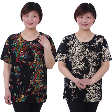 中老年女裝夏裝 老年媽媽裝短袖 加肥中老年夏季短款上衣廠家直銷 /