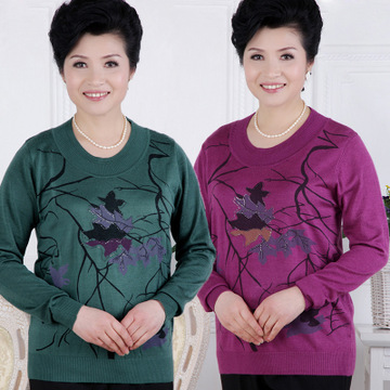 中年春裝女裝針織衫中老年服裝春秋裝媽媽裝圓領套頭女裝廠家直銷 /