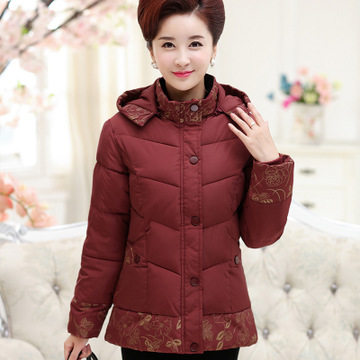 中老年女裝棉衣冬裝印花連帽加厚外套 中年媽媽裝棉衣秋冬外套 /