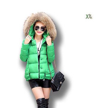 2015冬季韓版新款女式棉衣短款A(yù)字斗篷加厚大毛領(lǐng)連帽棉服女外套 /