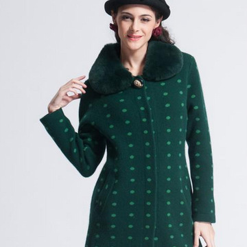 媽媽戀2015新款中老年大碼女裝貂絨大衣外套女圓點帶毛領大衣女 /