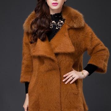 2015秋冬新款韓版女裝女士加厚開衫毛衣狐貍毛領貂絨大衣長款外套 /