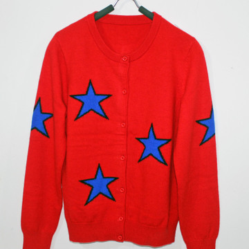 秋冬女式貂絨衫學院風針織貂絨開衫星星針織純貂絨打底衫針織衫 /