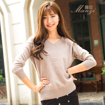 2015秋冬新款100%韓版V領貂絨衫純色多色羊毛衫打底衫針織衫 /