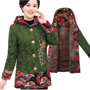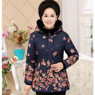 中老年女裝冬裝棉衣中年婦女冬天外套媽媽裝保暖印花棉服連帽棉襖 /