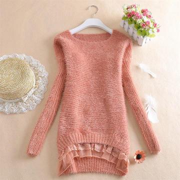 雜款秋冬女裝新款上衣 下擺花邊毛衣女式中長款毛針織衫 /