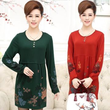 中老年女裝秋裝針織衫40-50歲中年媽媽裝春秋長袖中長款t恤連衣裙 /