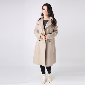 韓版女款顯瘦 杏黃色 長款毛呢大風(fēng)衣 /